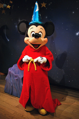 ひらひらの赤いローブにきらきらの帽子なお弟子さん。