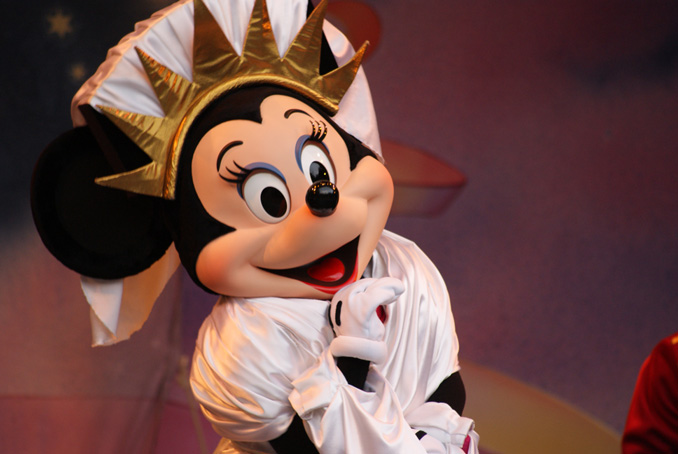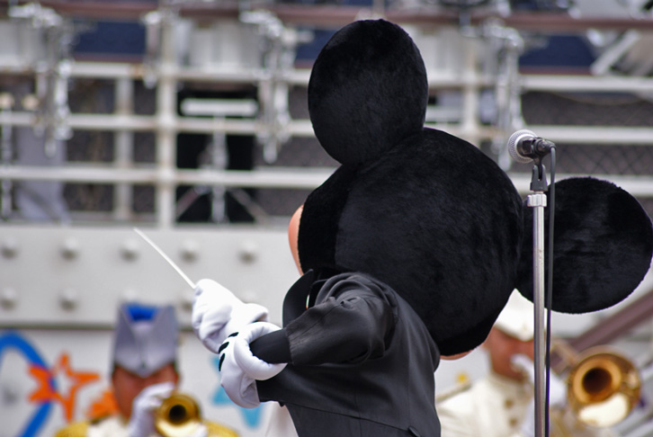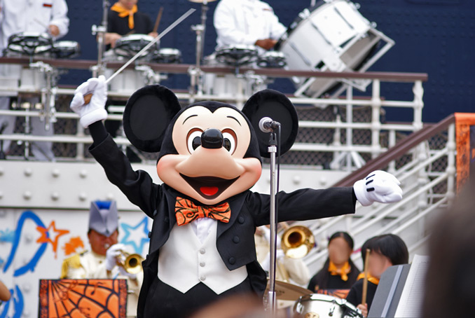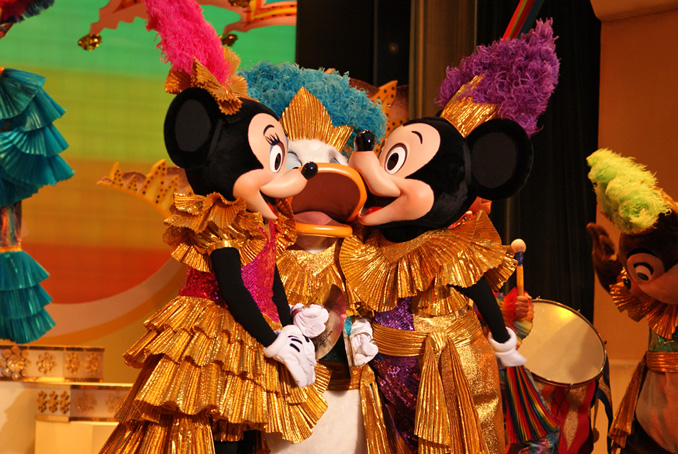 ミッキーとハイタッチして舞台裏にもどっていく学生さん達は輝いてました。
